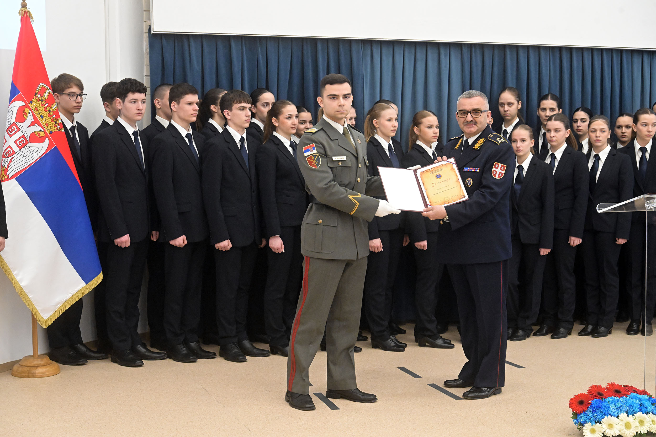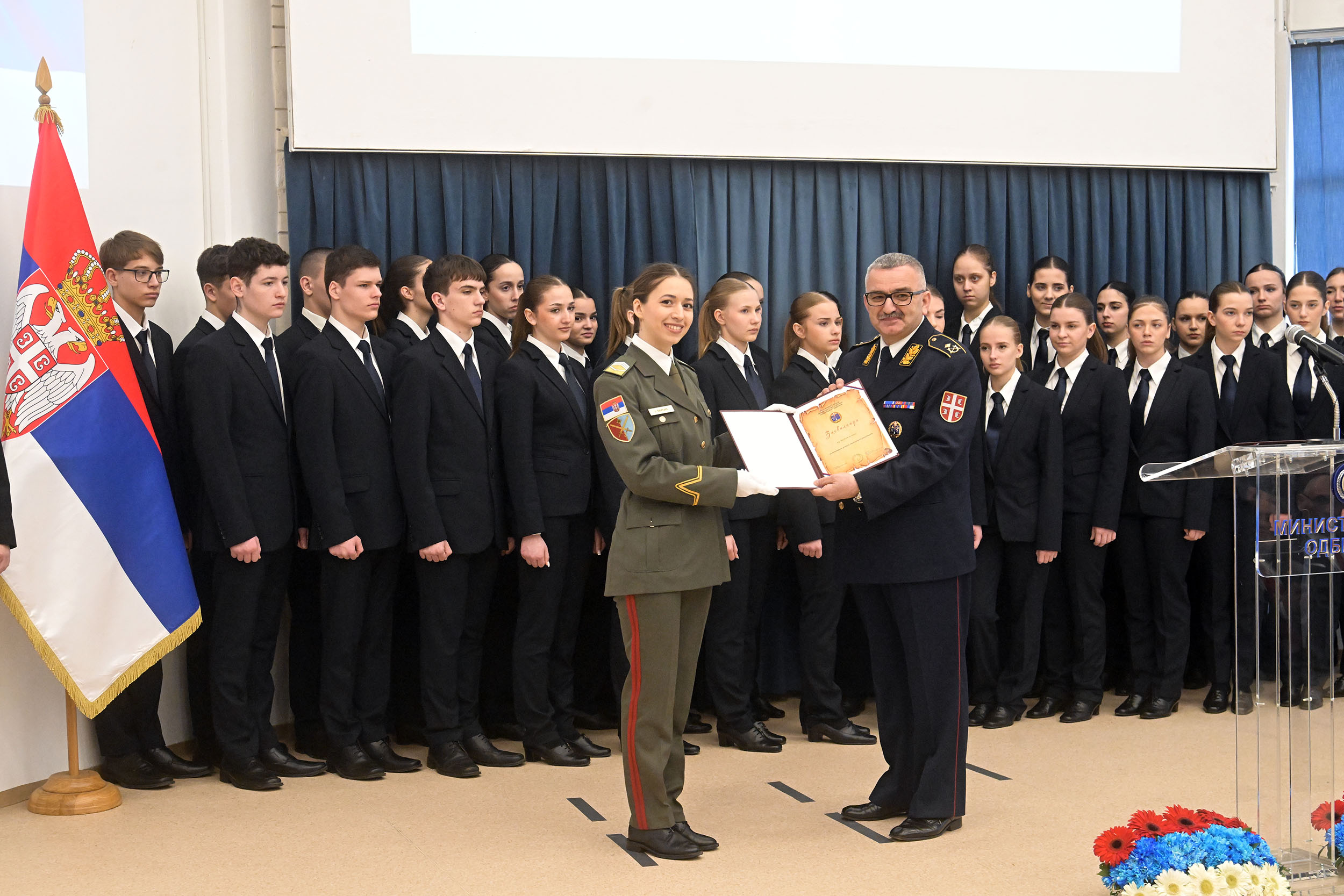 - На вашу иницијативу, донели смо измену Одлуке о повећању новчаних примања за оне који одговорно испуњавају своје обавезе, а нарочито за оне који постижу одличне и изузетне резултате током школовања. На тај начин показујемо бригу о њиховом положају и статусу – рекао је министар Гашић додавши да ће се и у наредном периоду наставити са улагањем у развој војног школства, јачање наставних капацитета јер је знање један од кључних услова за победу на бојном пољу.