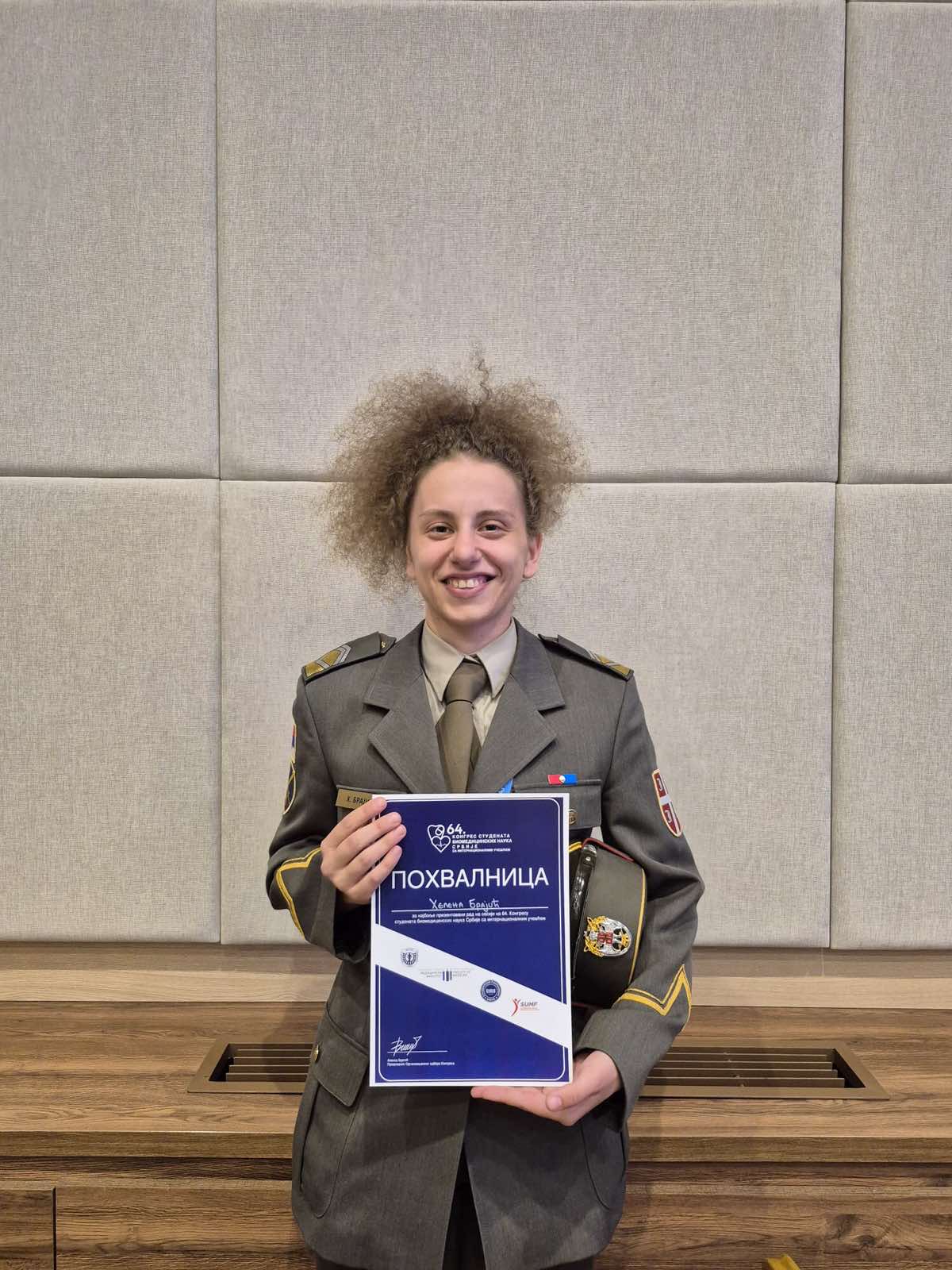 - Кадеткиња 14. класе Хелена Брајић, која је освојила прво место у оквиру сесије за кардиологију са радом „Атријална фибрилација код срчане инсуфицијенције са смањеном ејекционом фракцијом - искуство једног центра“ под менторством доц. др Милене Пандрц.