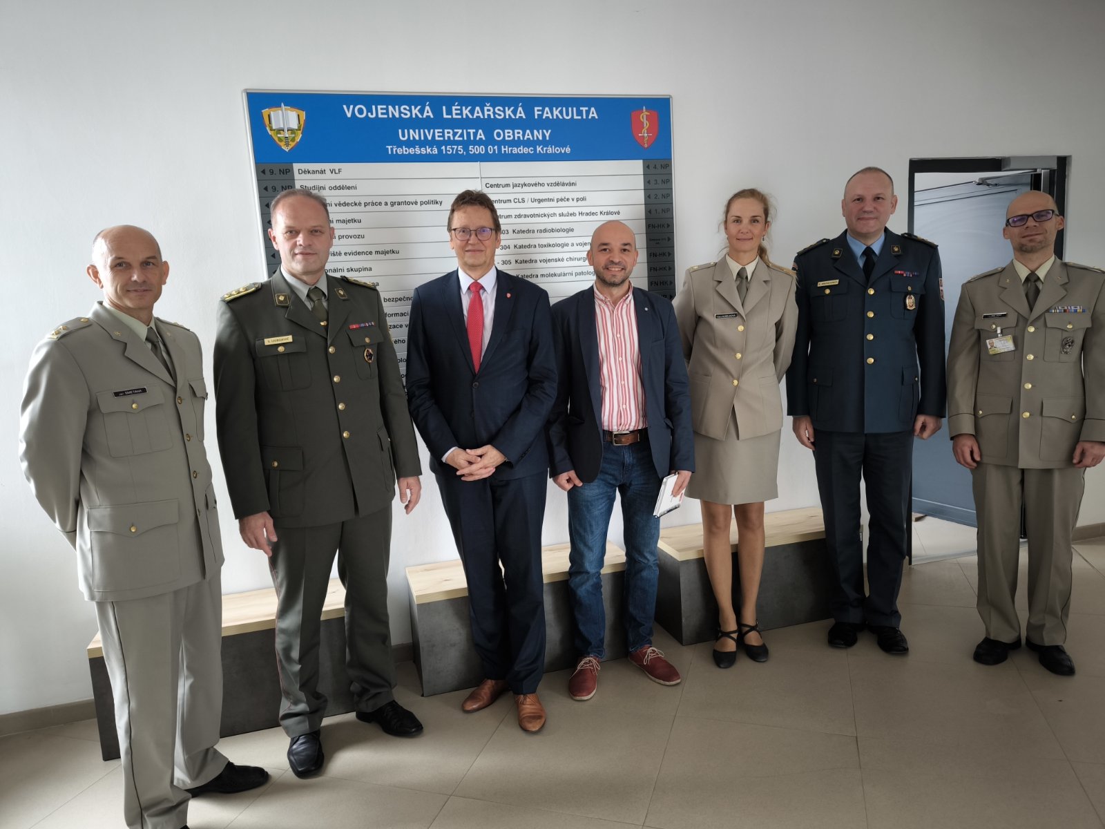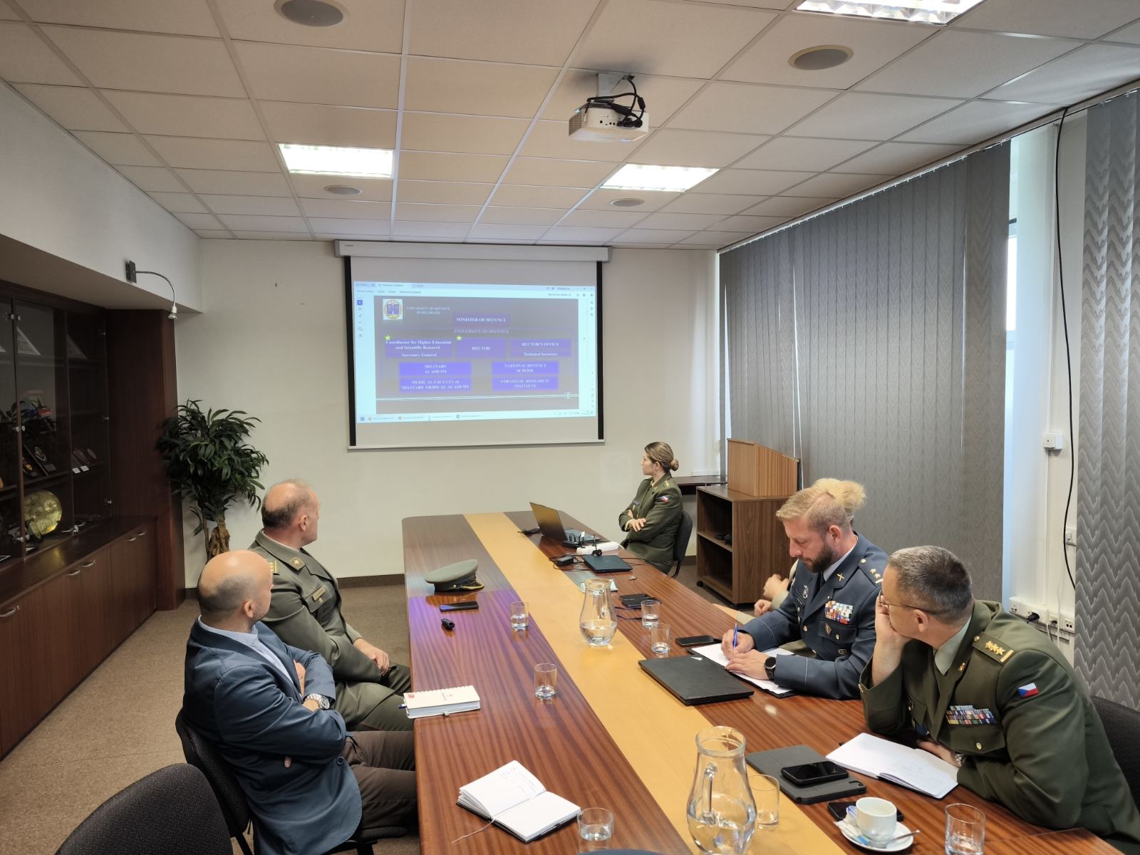 Tročlana delegacija, koju čine pukovnik vanr. prof. dr Srđan Ljubojević, prorektor za međunarodnu vojnu i među-univerzitetsku saradnju Univerziteta odbrane, pukovnik vanr. prof.dr Bojan Milanović, prodekan za nastavu Dekanata Vojne akademije i vs vanr.prof dr Nemanja Rančić, prodekan za nastavu MF VMA, posetila je Univerzitet odbrane u Brnu, i tom prilikom se upoznala sa namenom, organizacijom i delatnošću univerziteta i imala ekspertske razgovore u vezi sa uspostavljanjem institucionalne međuuniverzitetske saradnje u domenu školovanja i usavršavanja. Na UO u Brnu, delegaciju je primio rektor UO, a realizovani su obilasci nastavnih i istraživačkih kapaciteta organizacionih celina češkog univerziteta (Vojnog medicinskog fakulteta u Hradec Kralovu, Fakulteta za vojno liderstvo i Fakulteta za vojne tehnologije u Brnu). Upriličeni su sastanci sa rukovodstvom navedenih fakulteta, na kojima su, u prijateljskoj atmosferi, razmatrane mogućnosti proširenja saradnje dva univerziteta.